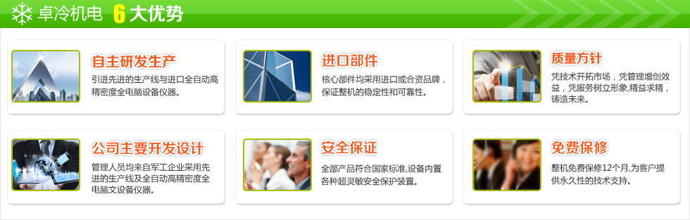 目前,公司不僅有自己的企業(yè)制造標準,而且嚴格按照IS09000 2000版質(zhì)量管理體系的要求管理企業(yè),確保向客戶提供滿足要求的產(chǎn)品和服務,并最終致力于使自己成為制冷行業(yè)制造商。